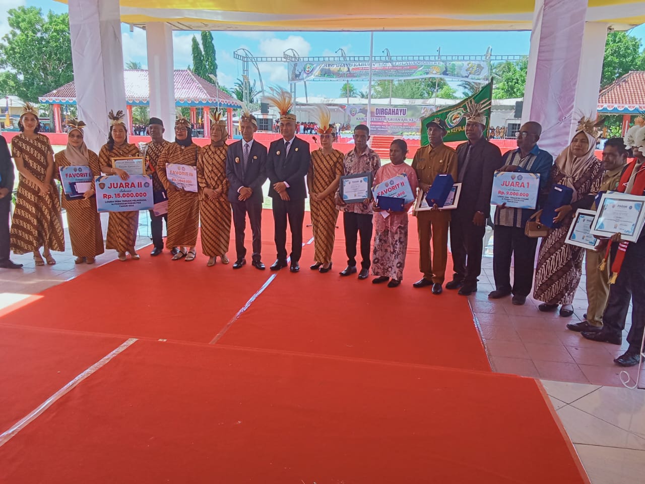 Jar Garia, Mafiaterkini- Setelah selesai Upacara memperingati Hut Kabupaten Kepulauan Aru ke- 22, kamis 18/12/25, acara dilanjutkan dengan penyerahan hadia berupa Piala, Piagam dan Uang stimulan untuk lomba desa Pelaksana terbaik 10 program Pokok PKK tingkat Provinsi Maluku tahun 2024 dan tingkat Kabupaten Kepulauan Aru tahun 2025, serta penyerahan piagam penghargaan kepada Desa Karangguli Kecamatan Pulau-Pulau Aru, sebagai Desa terbaik di provinsi Maluku, dalam program Desa Cinta Statistik tahun 2025.